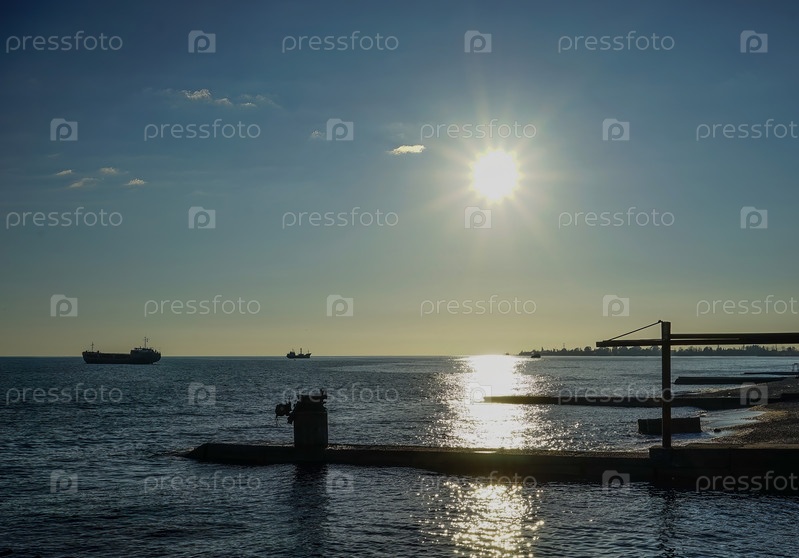 Морской пейзаж с волнорезами. Сухуми, Абхазия