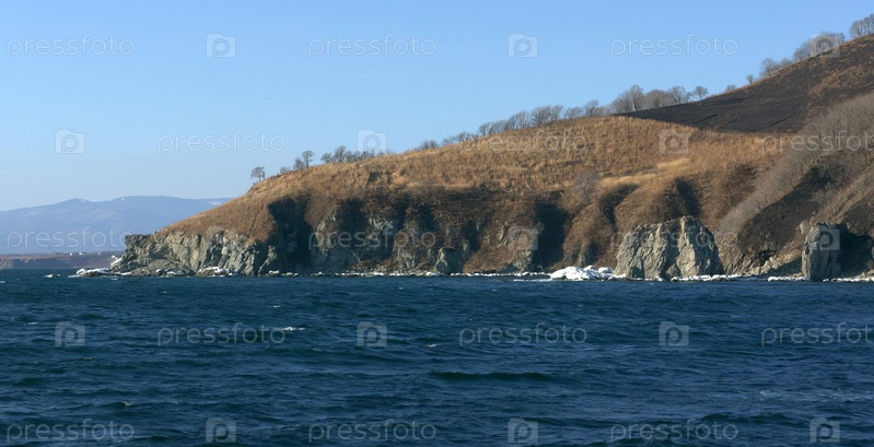 Морской пейзаж с видом на скалистый берег.Приморский край, Находка