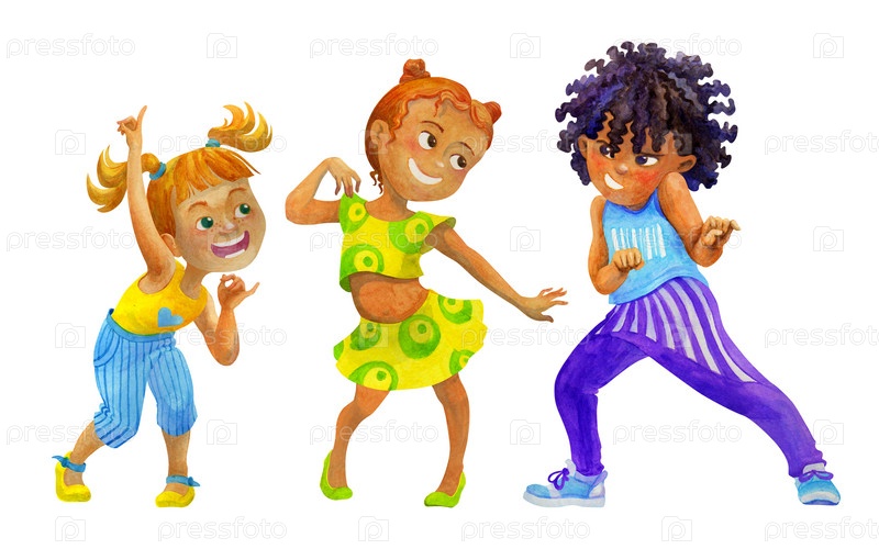 Танцующие дети. Изолированная акварельная иллюстрация для декора детских праздников, дизайна полиграфии и текстиля