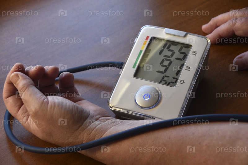 Измерение артериального давления у пенсионера. Тонометр для человека. Лечение пенсионера