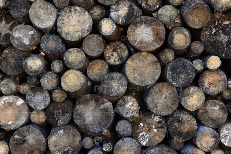 Распиленные бревна уложены у стены. Дрова для растопки. Распиленная древесина сосна
