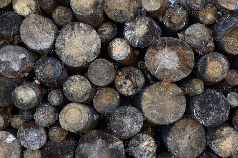 Распиленные бревна уложены у стены. Дрова для растопки. Распиленная древесина сосна
