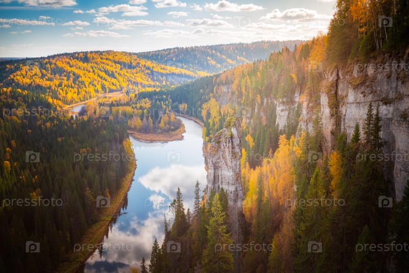 Осенний пейзаж на Усьвинских Столбах, Пермский край. Чертов палец на реке Усьва
