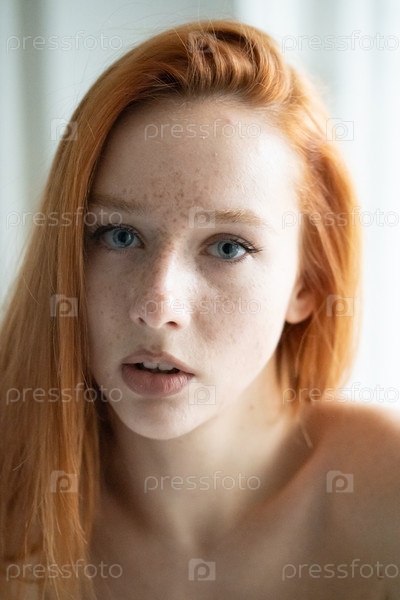 Портрет молодой красивой женщины с рыжими волосами в студии
