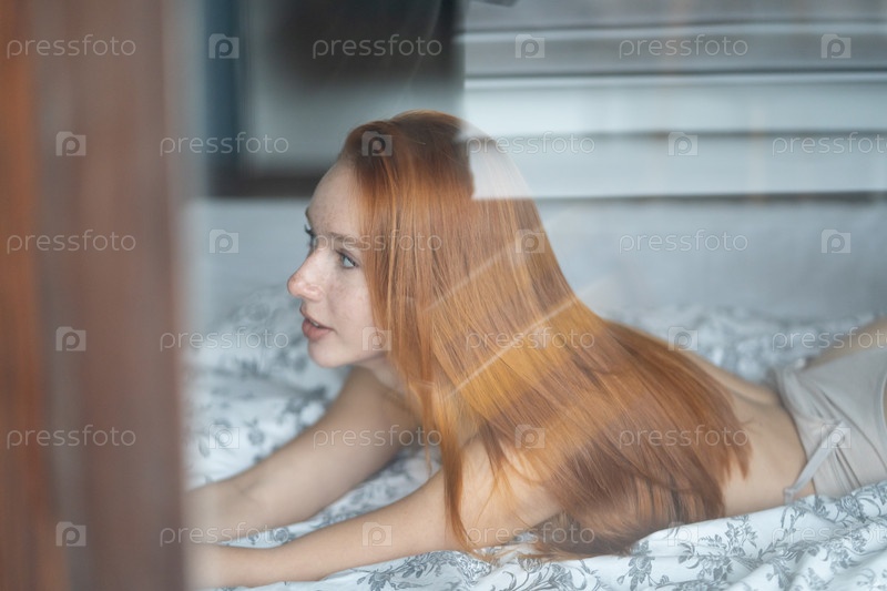 Портрет молодой красивой женщины с рыжими волосами в студии