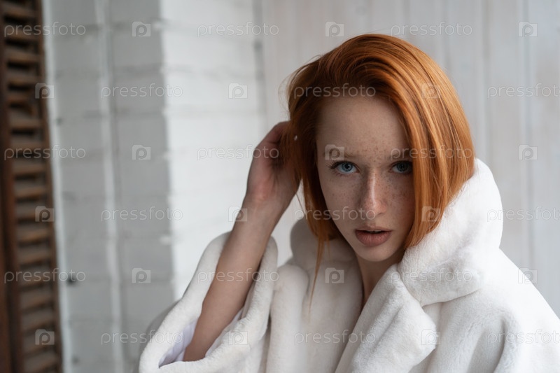 Портрет молодой красивой женщины с рыжими волосами в студии