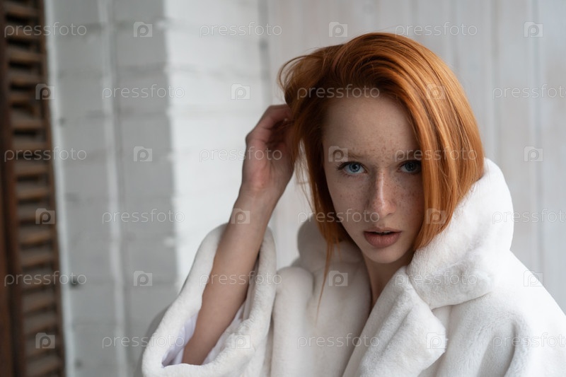 Портрет молодой красивой женщины с рыжими волосами в студии
