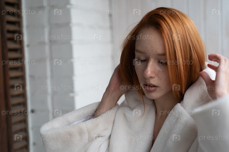 Портрет молодой красивой женщины с рыжими волосами в студии