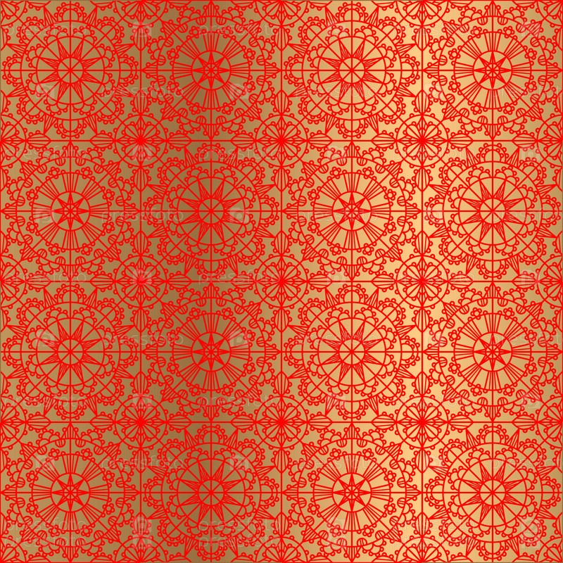 Роскошный красный орнамент в стиле кружева ренессанс на золотом фоне