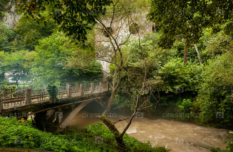Железнодорожный мост через реку Псырцха перед в туннелем. Новый Афон, Абхазия