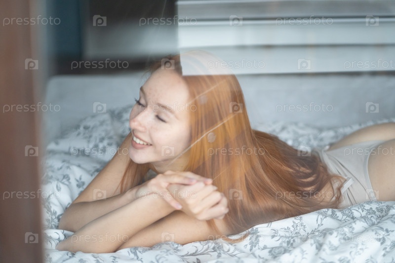 Портрет молодой красивой женщины с рыжими волосами в студии