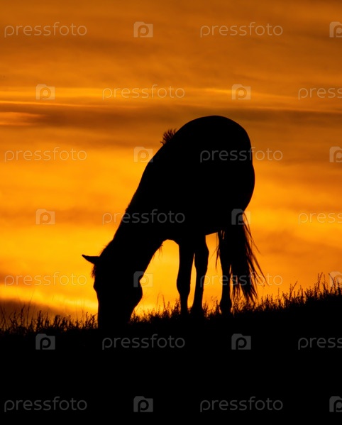 Восточный Казахстан, Лошади в лучах закатного солнца в природном горном парке Баянаул