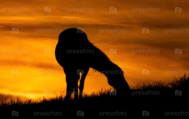 Восточный Казахстан, Лошади в лучах закатного солнца в природном горном парке Баянаул