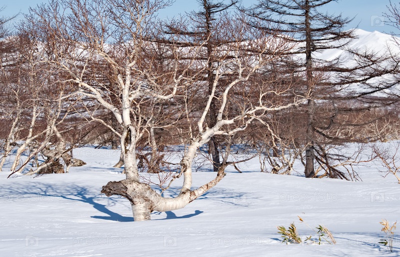 Россия. Дальний Восток, остров Итуруп. Причудливая корявость каменной березы, которая обитает только на Камчатке и Курильских островах, образуется из-за постоянных ветров с Тихого океана
