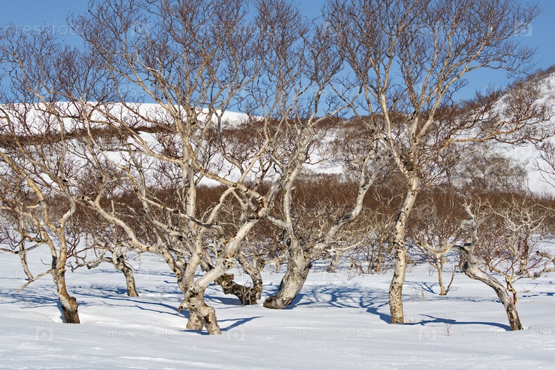 Россия. Дальний Восток, остров Итуруп. Причудливая корявость каменной березы, которая обитает только на Камчатке и Курильских островах, образуется из-за постоянных ветров с Тихого океана