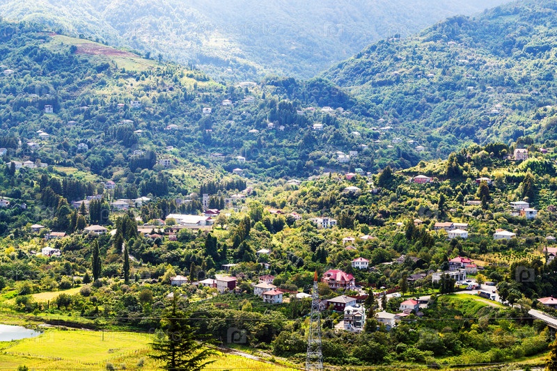 Вид сверху на деревню Эрге в долине недалеко от Батуми