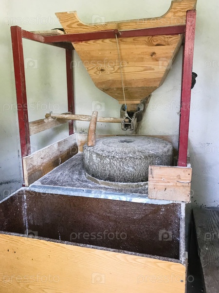 Маленькая деревенская мельница с ручным жерновом в деревне