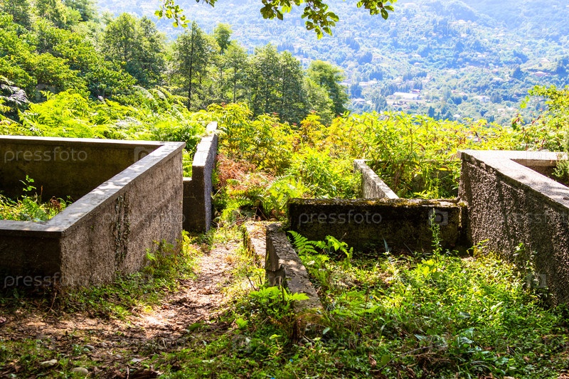 Могилы с каменным забором на кладбище Эрге в Батуми
