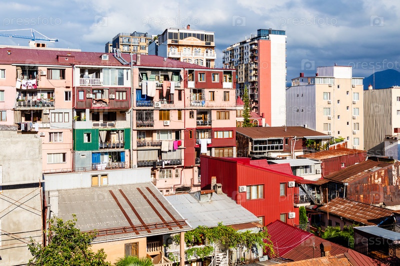 Городской квартал в городе Батуми в солнечный осенний день