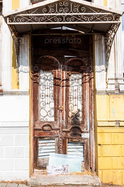Ветхая входная дверь городского дома в городе Батуми