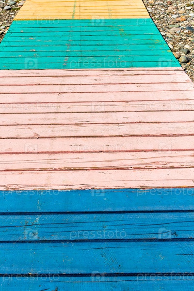 Поверхность красочного деревянного пола на галечном пляже