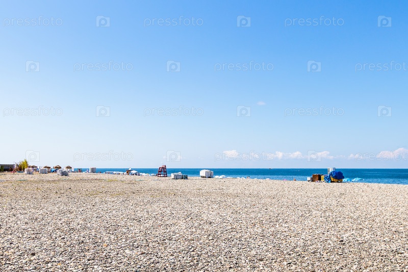 Галечный пляж в городе Батуми в солнечный осенний день