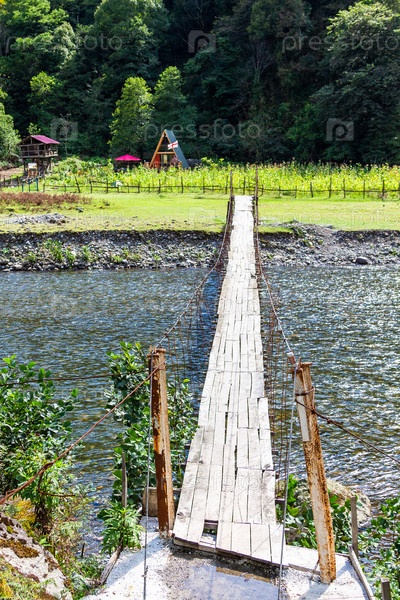 Вид на подвесной мост с деревянным полом