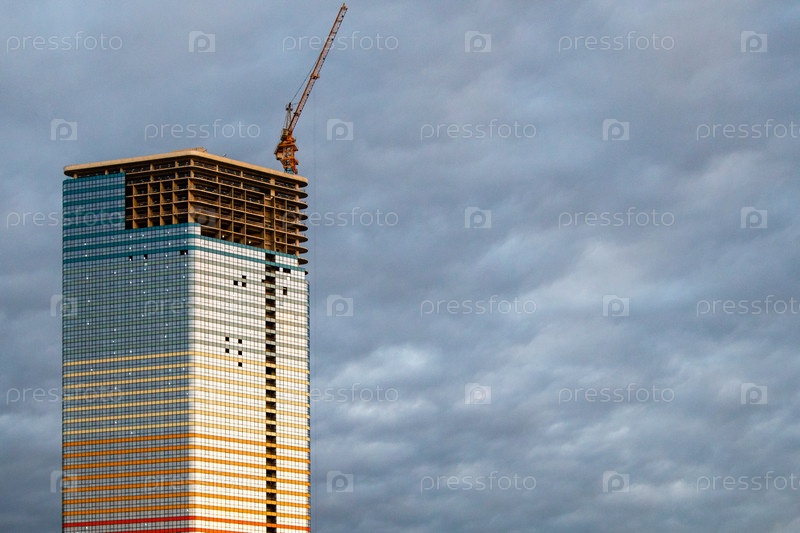 Строительство высотного здания с пасмурным небом