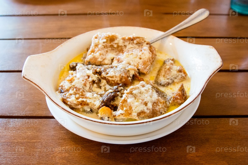 Курица Чкмерули, обжаренная в сливочно-чесночном соусе