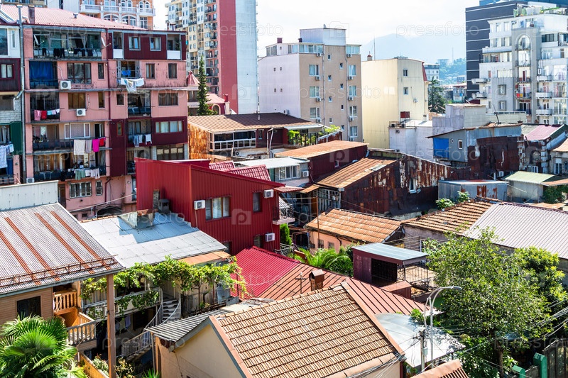 Вид сверху на плотную городскую застройку Батуми