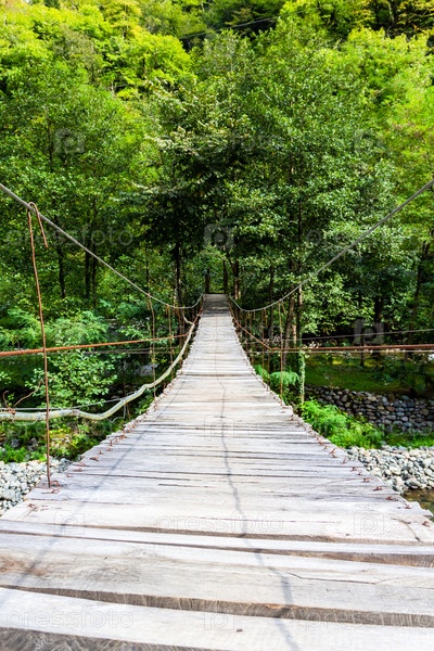 Деревянные доски подвесного моста в Аджарии
