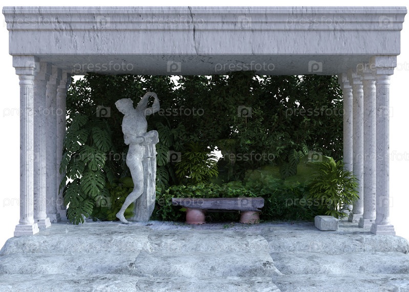 3D-статуя и каменная скамейка