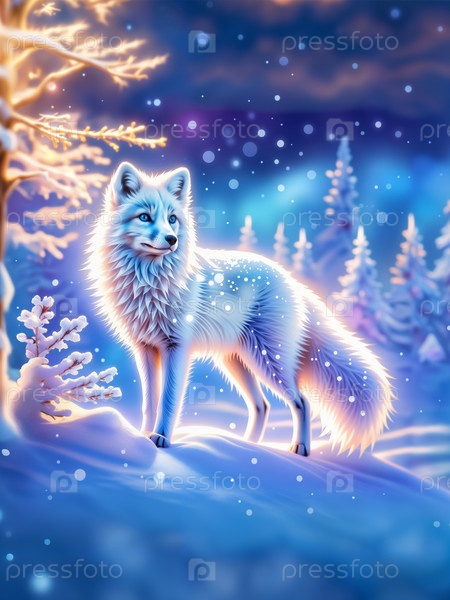 Зимняя сцена с песцом