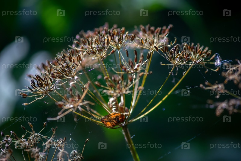 Ветка зонтичного растения освещена лучами солнца