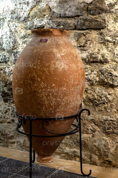 Пифос красноглиняный, изготовленный в 7-10 в.в. установлен на металлической декоративной подставке