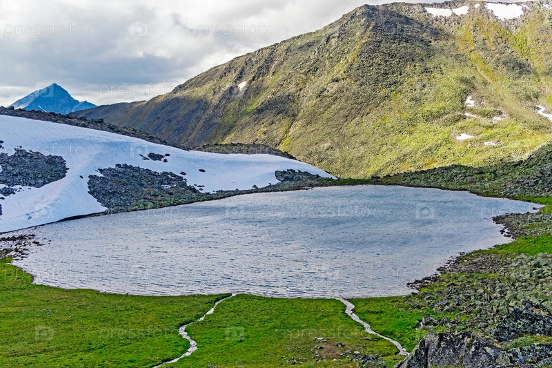 Пейзаж горного озера в пасмурный летний день