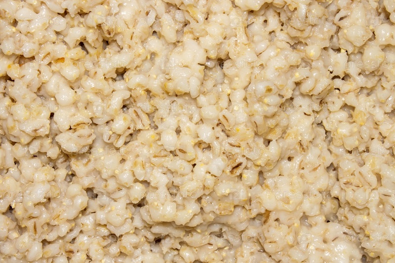 Сделанная в домашних условиях жемчужная каша.Текстура жемчужной каши.Жемчужинадомашняя порция перловой ячменной пшеницы.Текстура порции перловой ячменя.Фон Pearl barley background