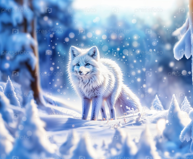 Зимняя сцена с песцом