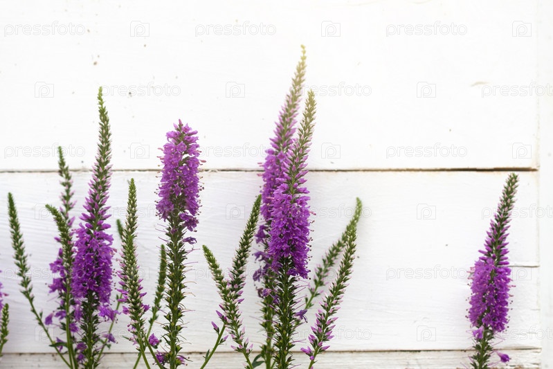 Фиолетовые цветы на белом фоне с солнечным светом. шаблон дизайна с местом для текста
