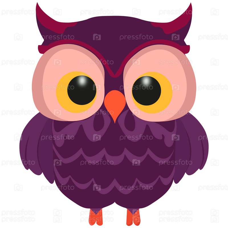 Сова. Лиловая сова с большими глазами. Икона. Печать. Иллюстрация