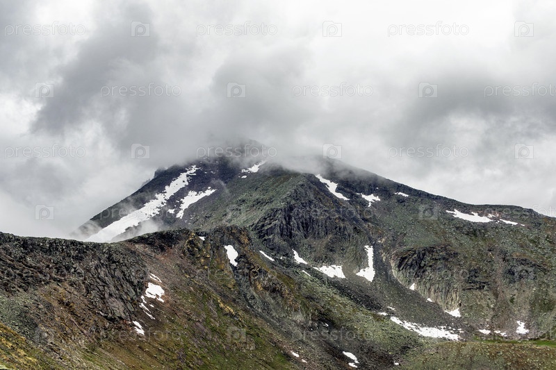 Горная вершина в облаках в пасмурный день
