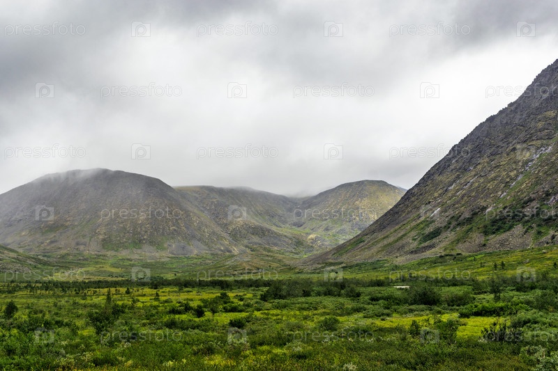 Горный хребет в облаках в пасмурный день