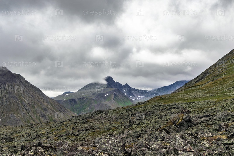 Горная вершина в облаках в пасмурный день