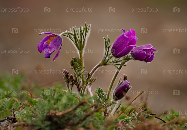 Россия. Юг Западной Сибири. Прострел раскрытый (Сон-трава) - первые весенние цветы на каменистых склонах горного Алтая