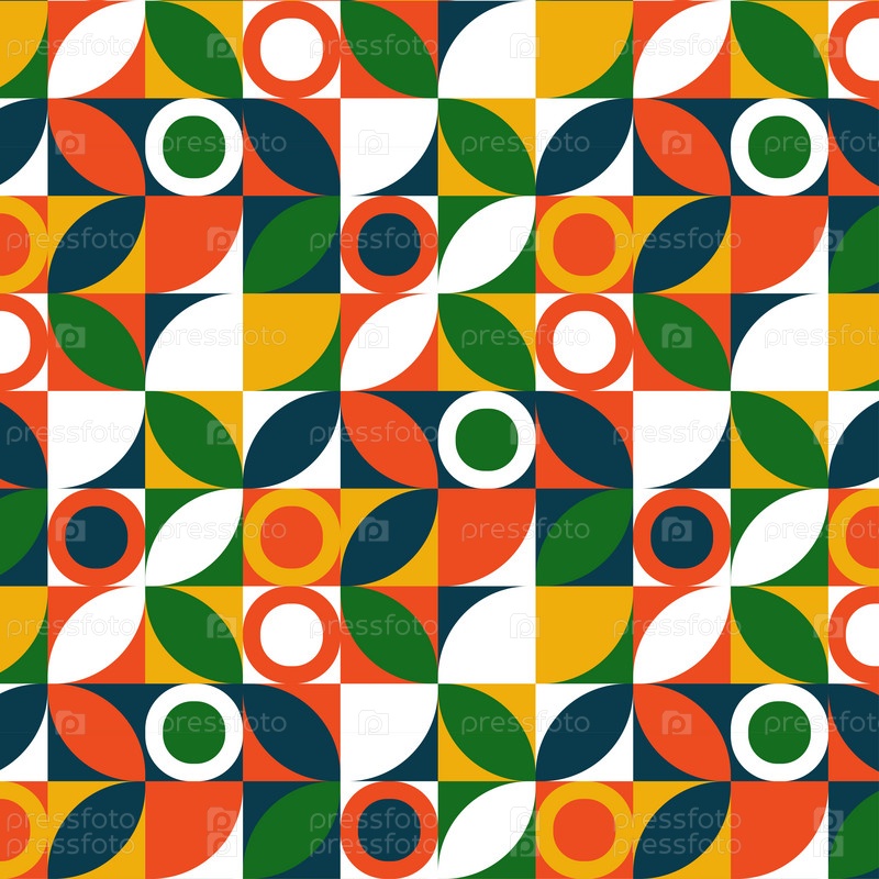 Геометрический простой бесшовный узор с лепестками колец квадратов белый зеленый синий желтый векторное изображение