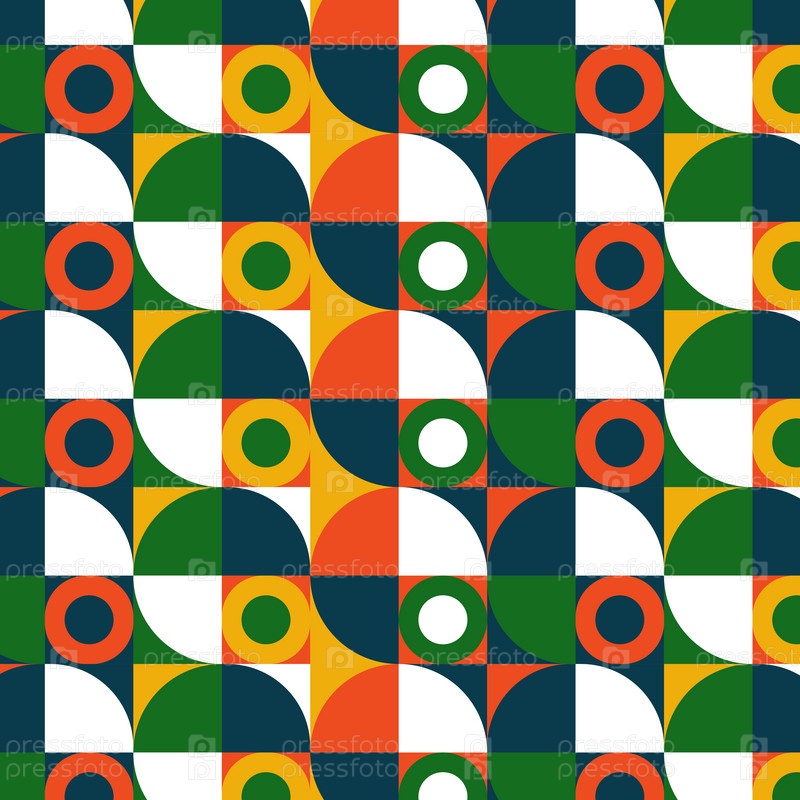 Геометрический простой узор бесшовный статический гладкий с частями кругов кольца белый зеленый синий желтый оранжевый векторное изображение