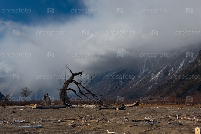 Россия. Горный Алтай. Заброшенные коряги на южном побережье Телецкого озера в районе устья реки Чулышман