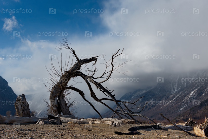 Россия. Горный Алтай. Заброшенные коряги на южном побережье Телецкого озера в районе устья реки Чулышман