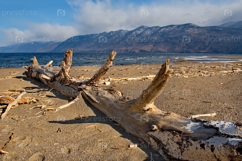Россия. Горный Алтай. Заброшенные коряги на южном побережье Телецкого озера в районе устья реки Чулышман
