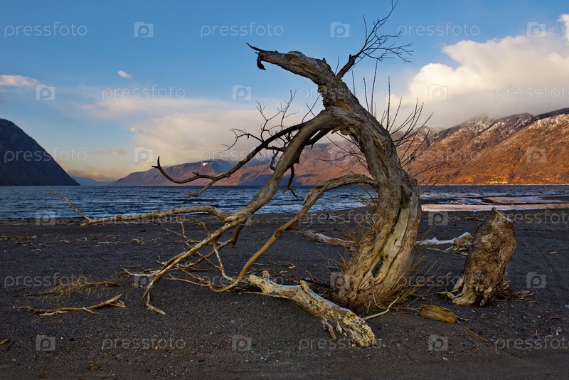 Россия. Горный Алтай. Заброшенные коряги на южном побережье Телецкого озера в районе устья реки Чулышман